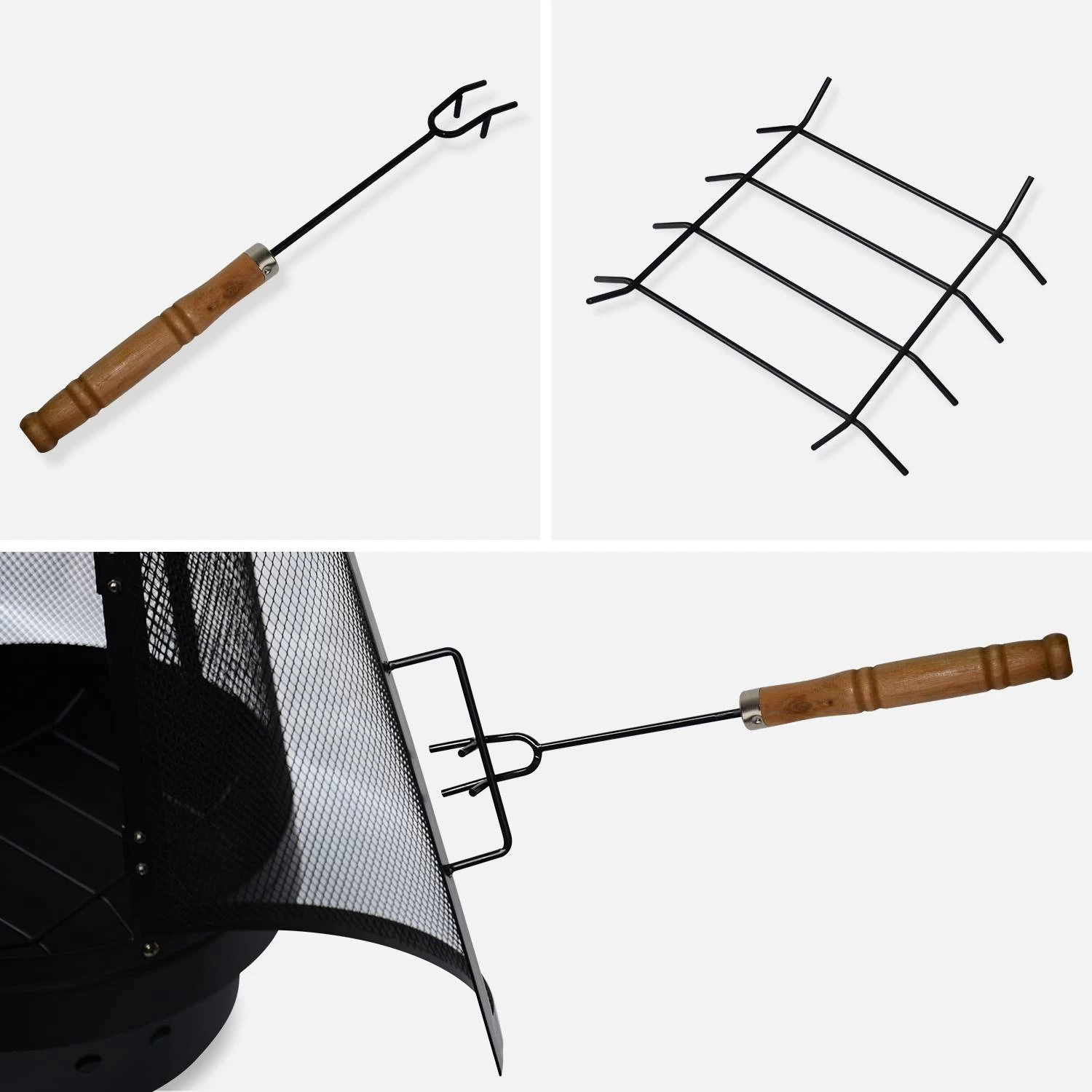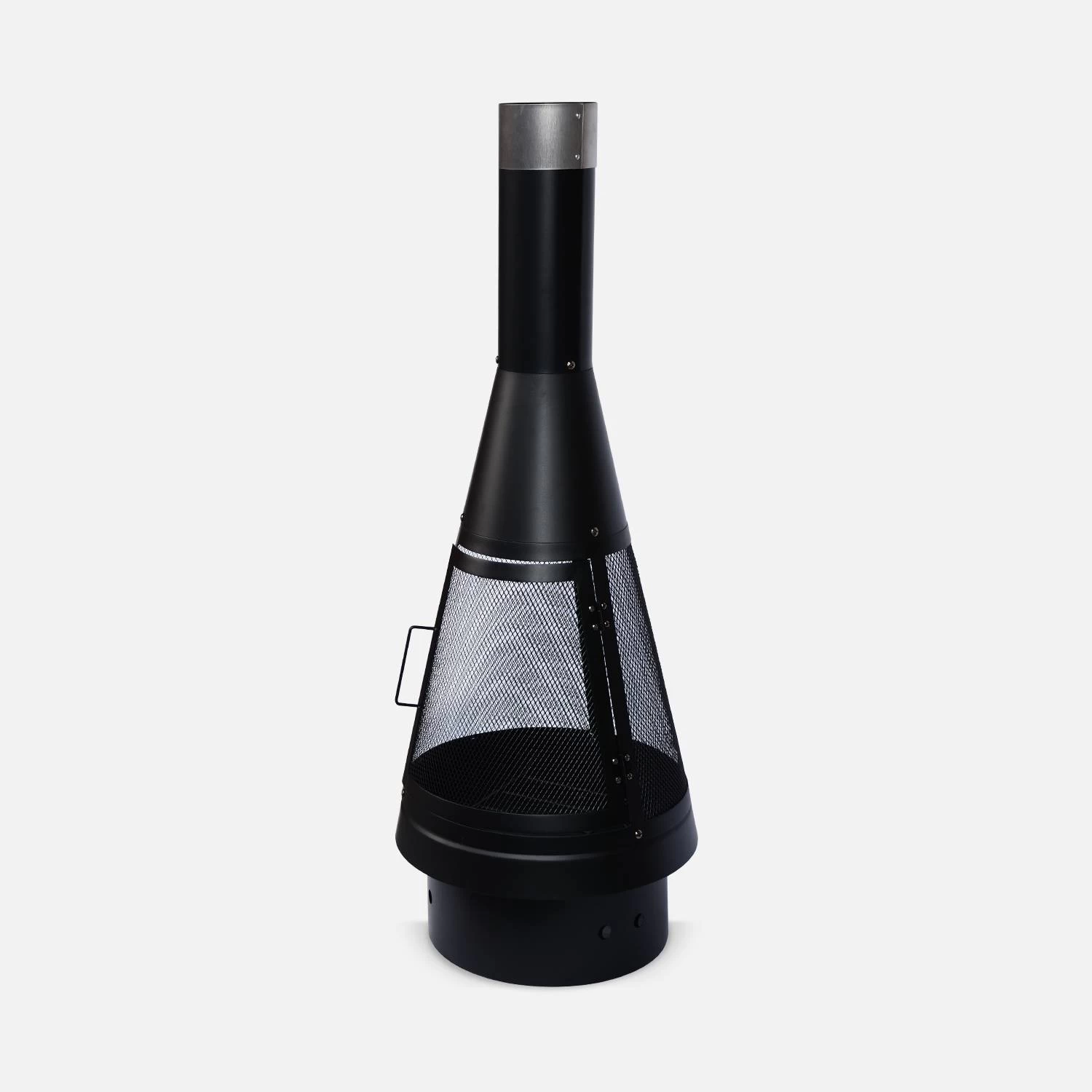 Grâce à une porte d’accès en façade, il est simple d’ajouter ou de manipuler le bois dans le foyer, à l’aide du tisonnier fourni. Ce braséro est en acier recouvert d’une jolie peinture noire, résistante à la chaleur. Les grilles qui entourent le foyer permettent de diffuser la chaleur tout autour de lui. La grille placée en bas du foyer, quant à elle, évite aux braises de s’étouffer avec les cendres. Le poêle de terrasse est sur une base dotée de 6 trous d’aération pour ventiler en dessous du foyer, et donc atténuer l’impact de la chaleur sur le sol pour préserver la pelouse ou la terrasse.