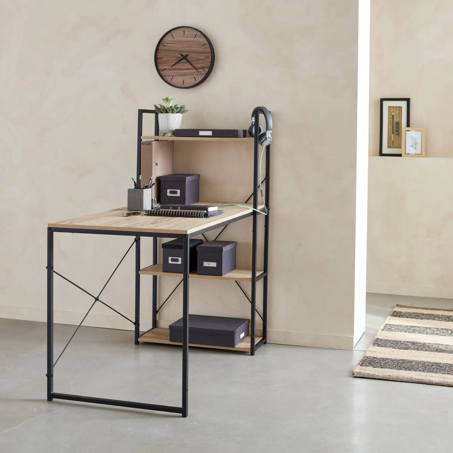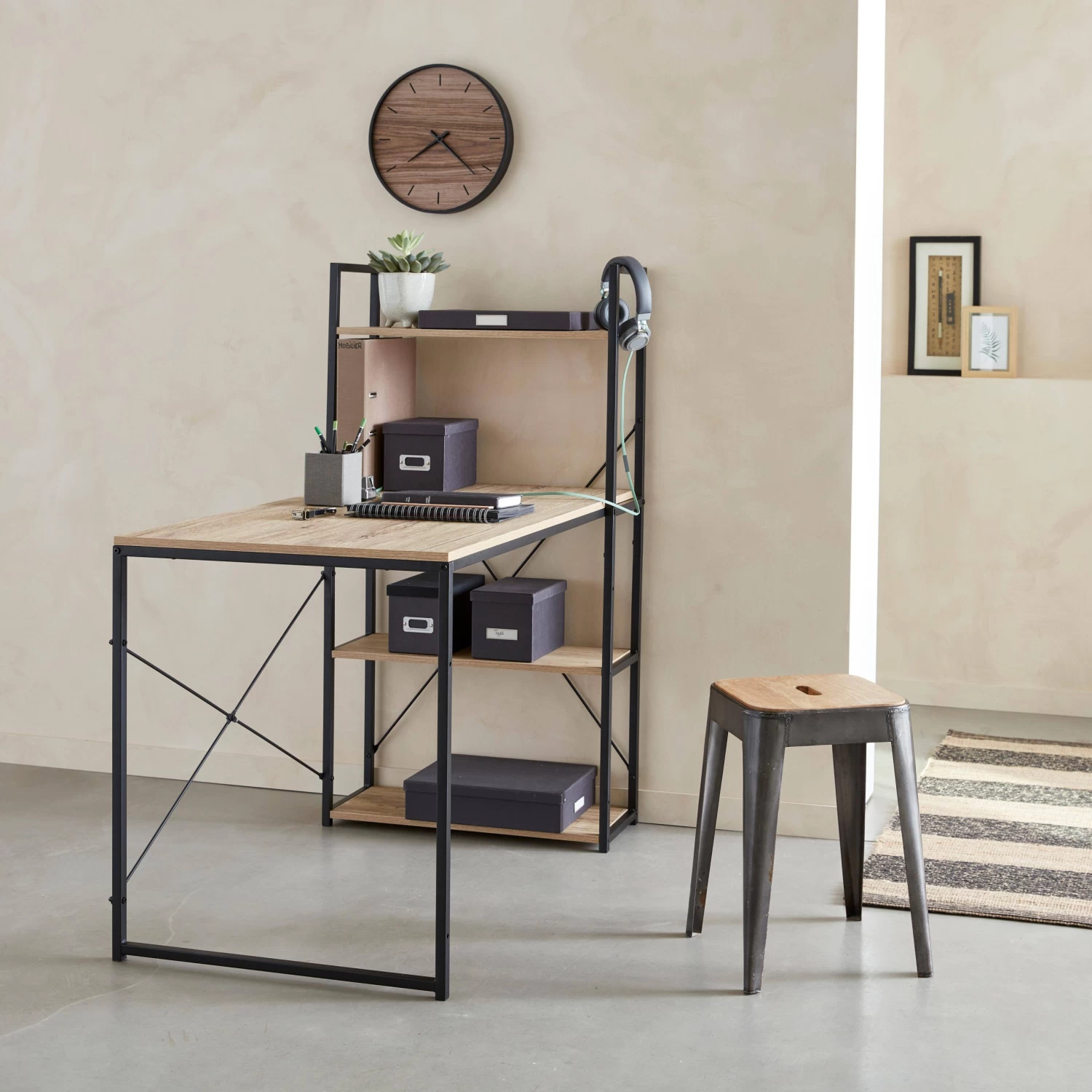 Ce double meuble deviendra pour votre pièce, un élément indispensable. Son design a été imaginé de sorte à habiller une décoration à la fois industrielle et authentique. Sa structure métallique en métal noir mat apportera modernité à votre pièce. Son décor bois quant à lui apportera le charme qui manque à votre intérieur. Ce bureau bibliothèque unique et tendance vous donnera envie de travailler à coup sûr !