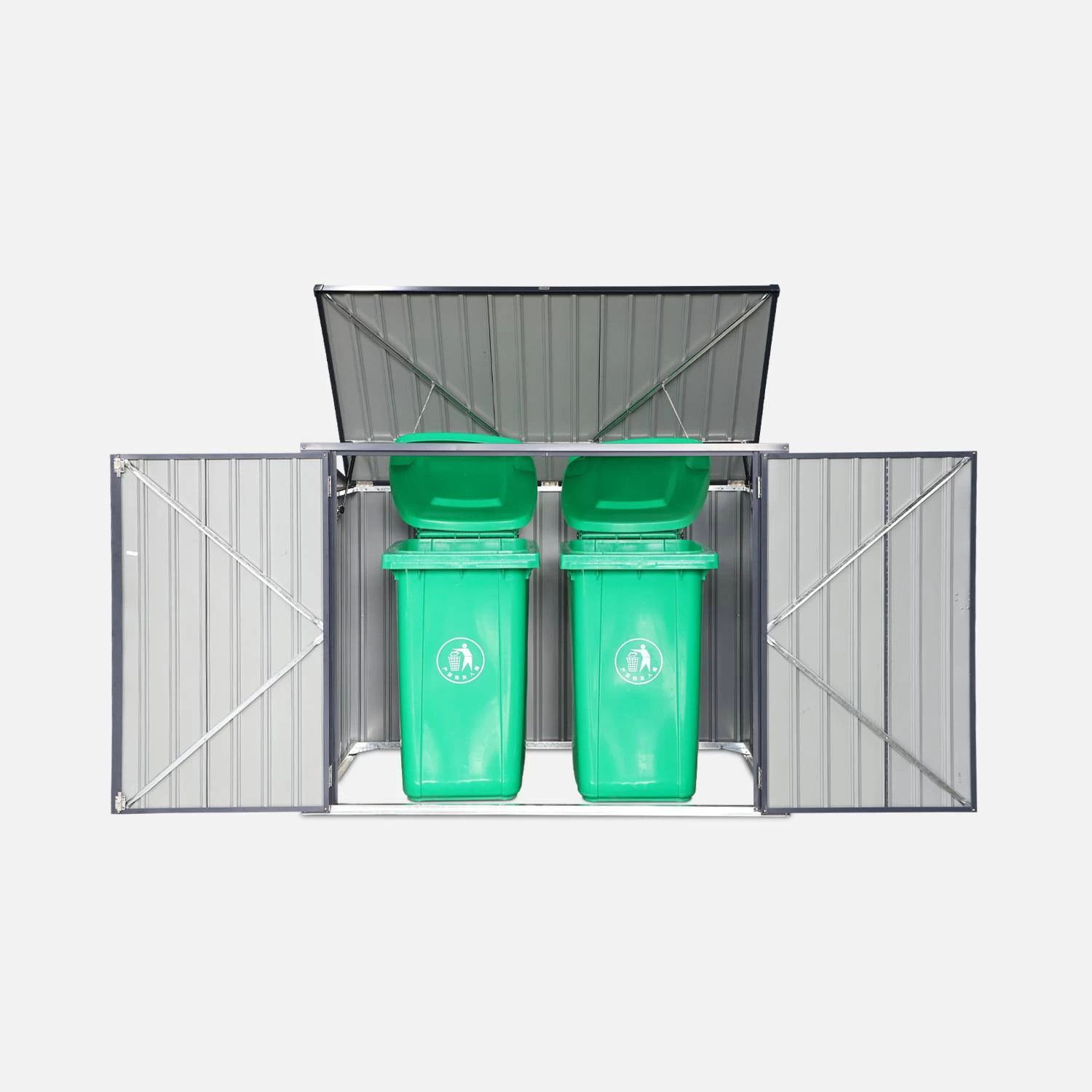 Le cache poubelle. Simple et efficace, comme son nom l’indique il permet de cacher vos poubelles de manière esthétique, tout en les abritant des intempéries. Avec son toit ouvrable directement relié au couvercle de votre poubelle, il vous facilite la vie. Votre jardin est débarrassé et on s’y sent tout de suite mieux. Véritable couteau suisse du rangement il peut également être utilisé comme abri de jardin. Vélos, outils de bricolage ou de jardinage et même votre tondeuse pourront y trouver leurs places.
