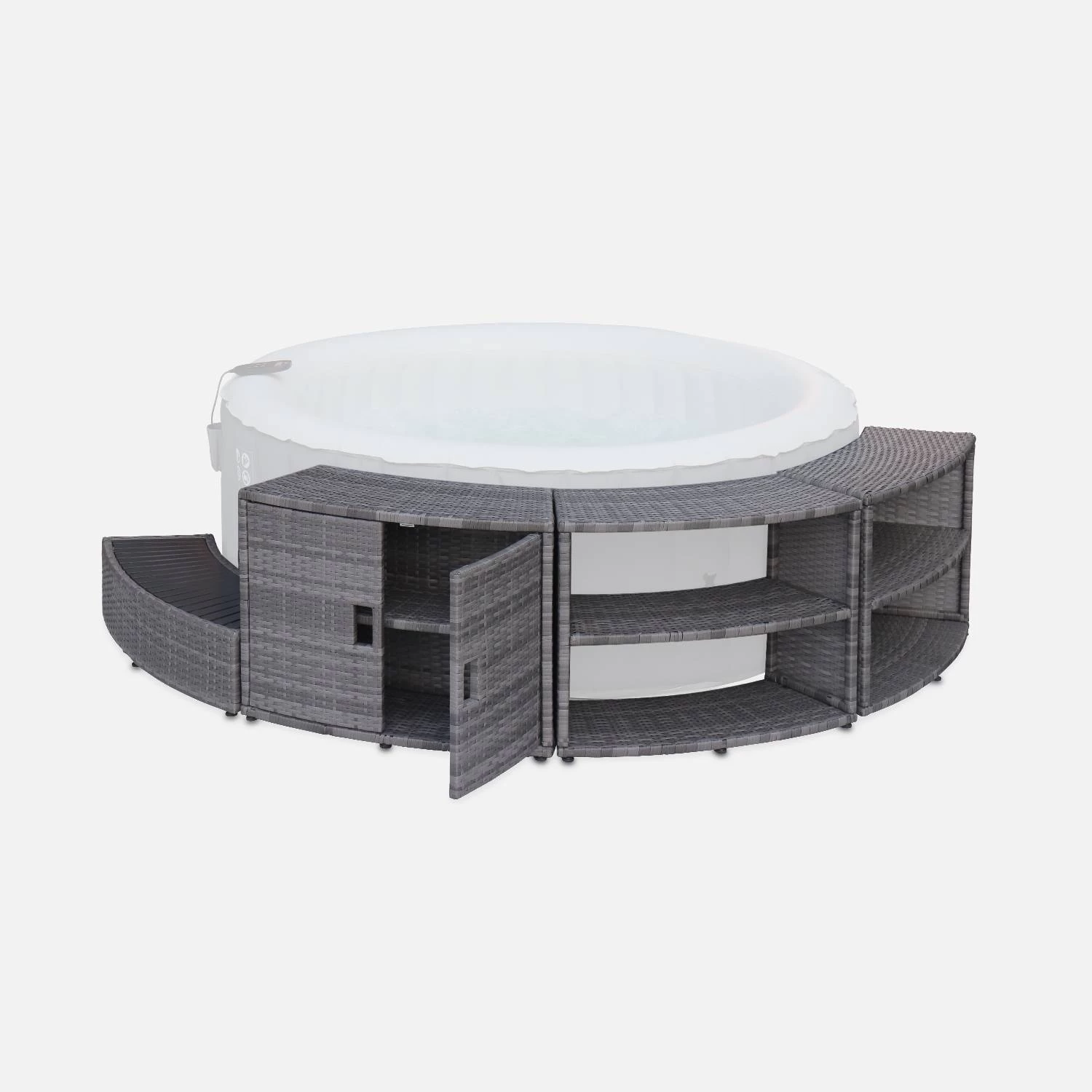 Donnez une allure chic et moderne à votre spa avec ce cadre en résine tressée. Il s’adapte parfaitement aux lignes du spa et ne dépasse ni en hauteur ni en largeur. Cet habillage spa est très pratique car il vous permet de garder à portée de main tout ce dont vous avez besoin pour passer un moment relaxant.
