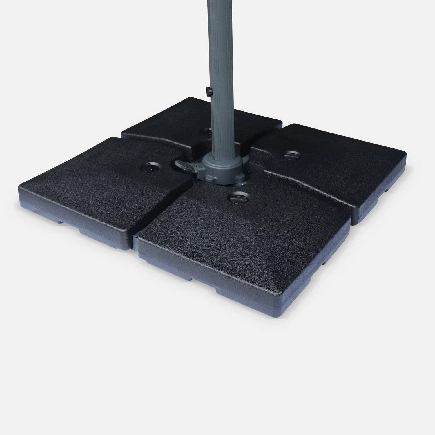 Ces dalles en plastique vous permettent de lester votre parasol déporté dont le pied est de type croix. Elles se remplissent de sable et sont résistantes aux chocs, aux intempéries et à l’usure. Ces dalles carrées sont vendues par lot de 4 uniquement.