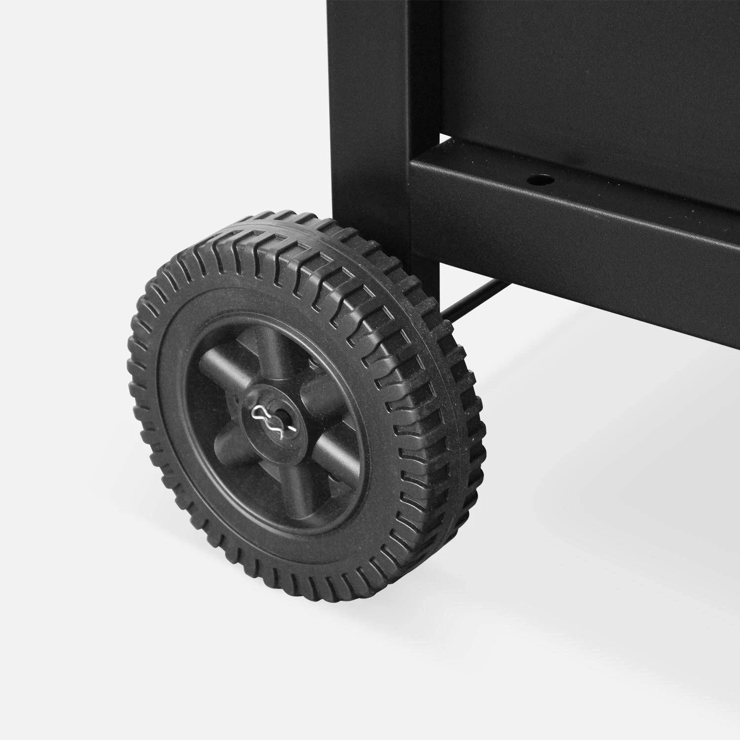 Pratique, le chariot se déplace facilement grâce à ses deux roues. Il est parfaitement adapté à la plancha Porthos 2 brûleurs.