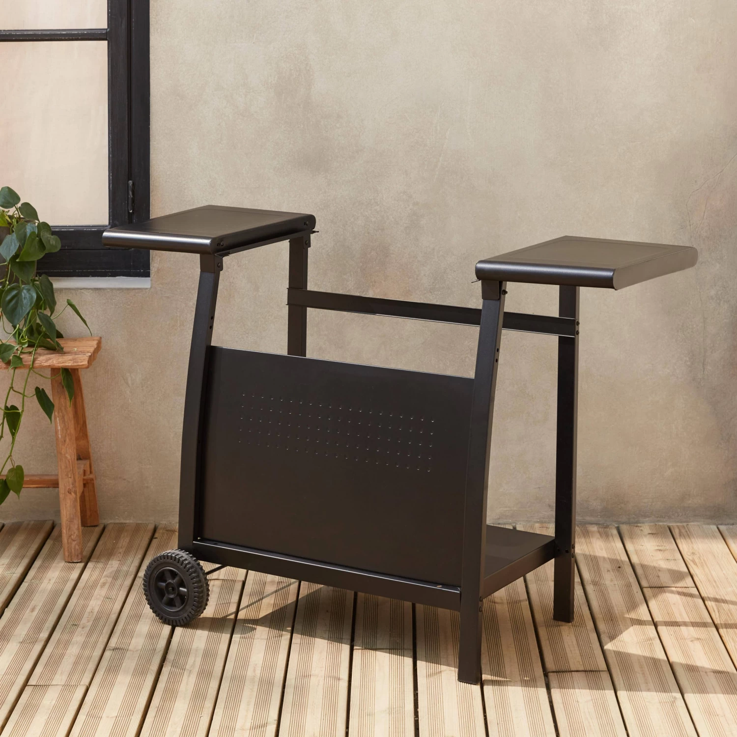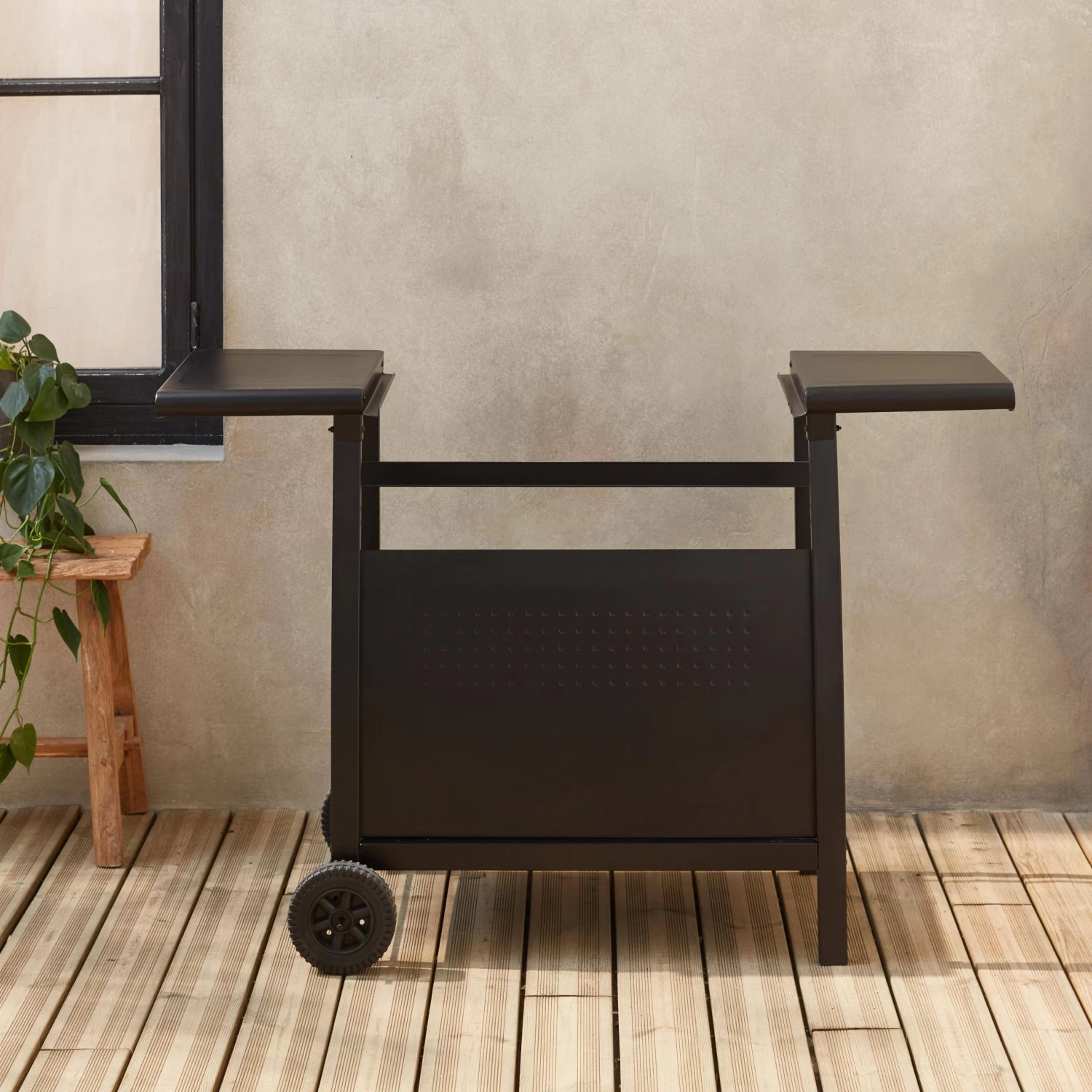 Cette desserte très pratique vous permet d’avoir plancha et ustensiles à portée de main. Le chariot est doté de deux tablettes qui accueillent plats et accessoires. Par ailleurs, vous pourrez ranger la bonbonne de gaz, en toute discrétion, sur la tablette inférieure.