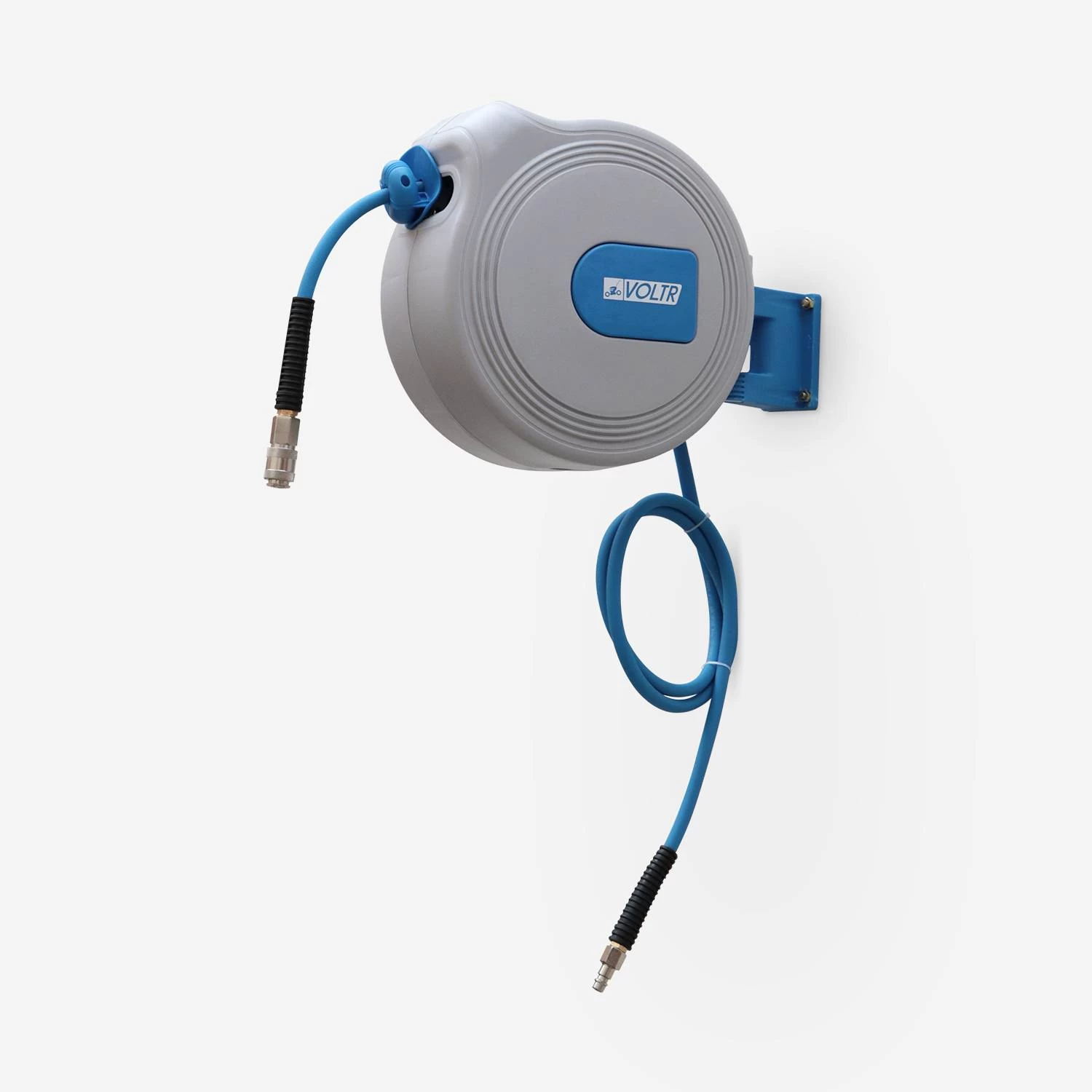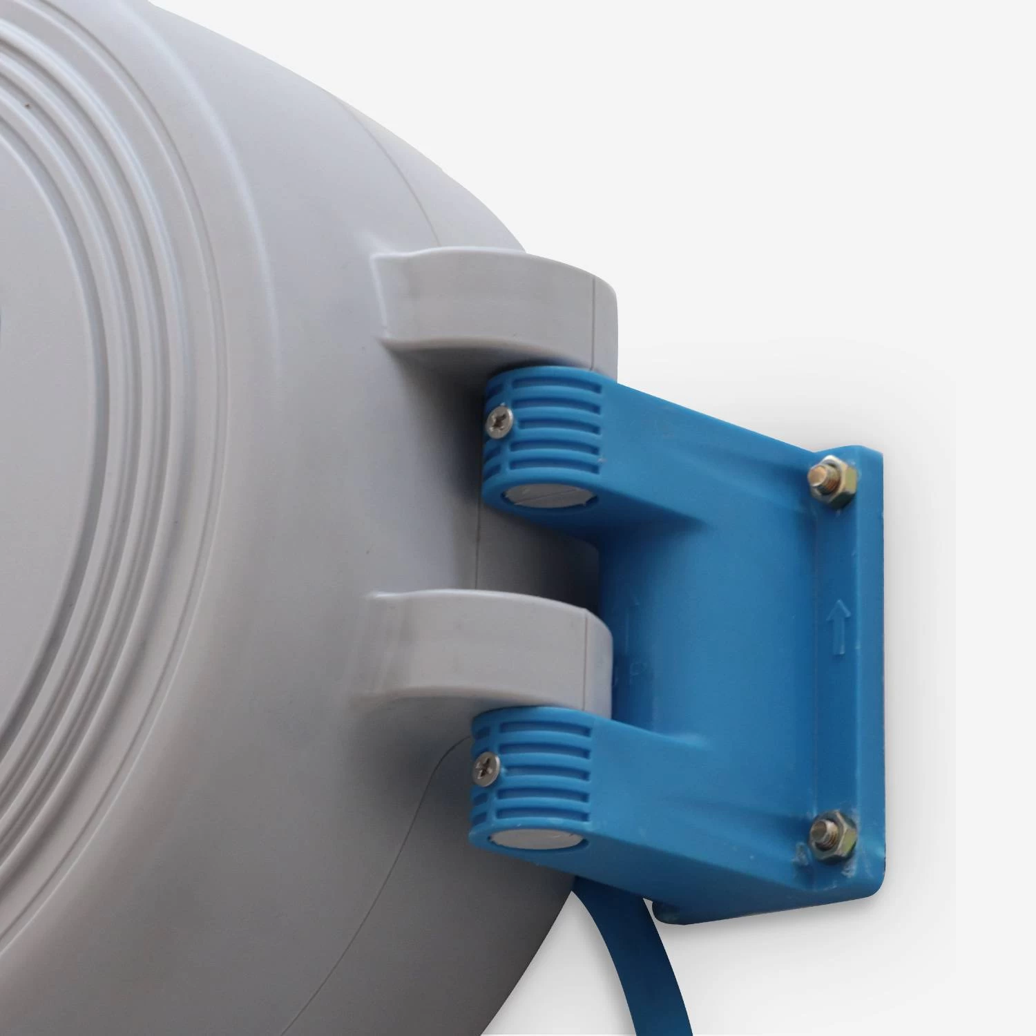 Ce dévidoir mural auto-enroulant est très pratique. Son tuyau long de 15 mètres peut être bloqué à n’importe quelle longueur. Pour se raccorder facilement, ce dernier est doté de deux connecteurs universels : un mâle pour le tuyau de raccordement et un femelle pour le tuyau. Pour être orienté où vous le souhaitez, le dévidoir pivote à 180° en fixation murale. Par ailleurs, le guide tuyau intégré permet d’éviter les nœuds. Lorsque vous avez fini d’utiliser le tuyau, l’enroulement automatique se fait en toute sécurité car sa rétractation est lente.