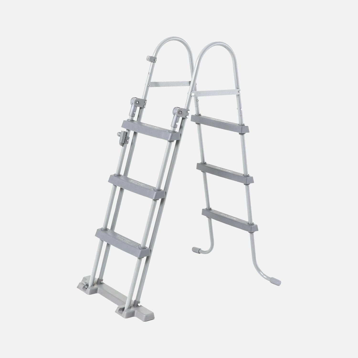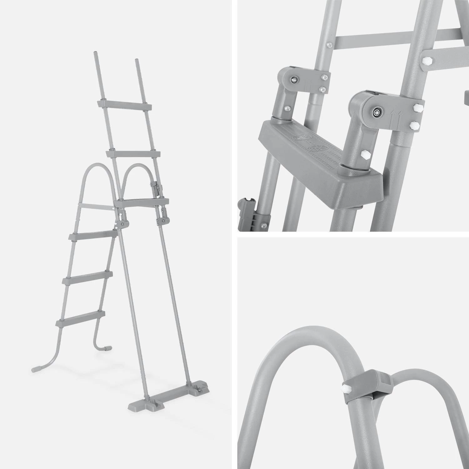 Cette échelle permettra de rentrer et sortir de votre piscine en toute sécurité. D’une hauteur de 107cm elle est robuste grâce à ses marches en plastique et sa structure en acier avec revêtement anti-corrosion.
