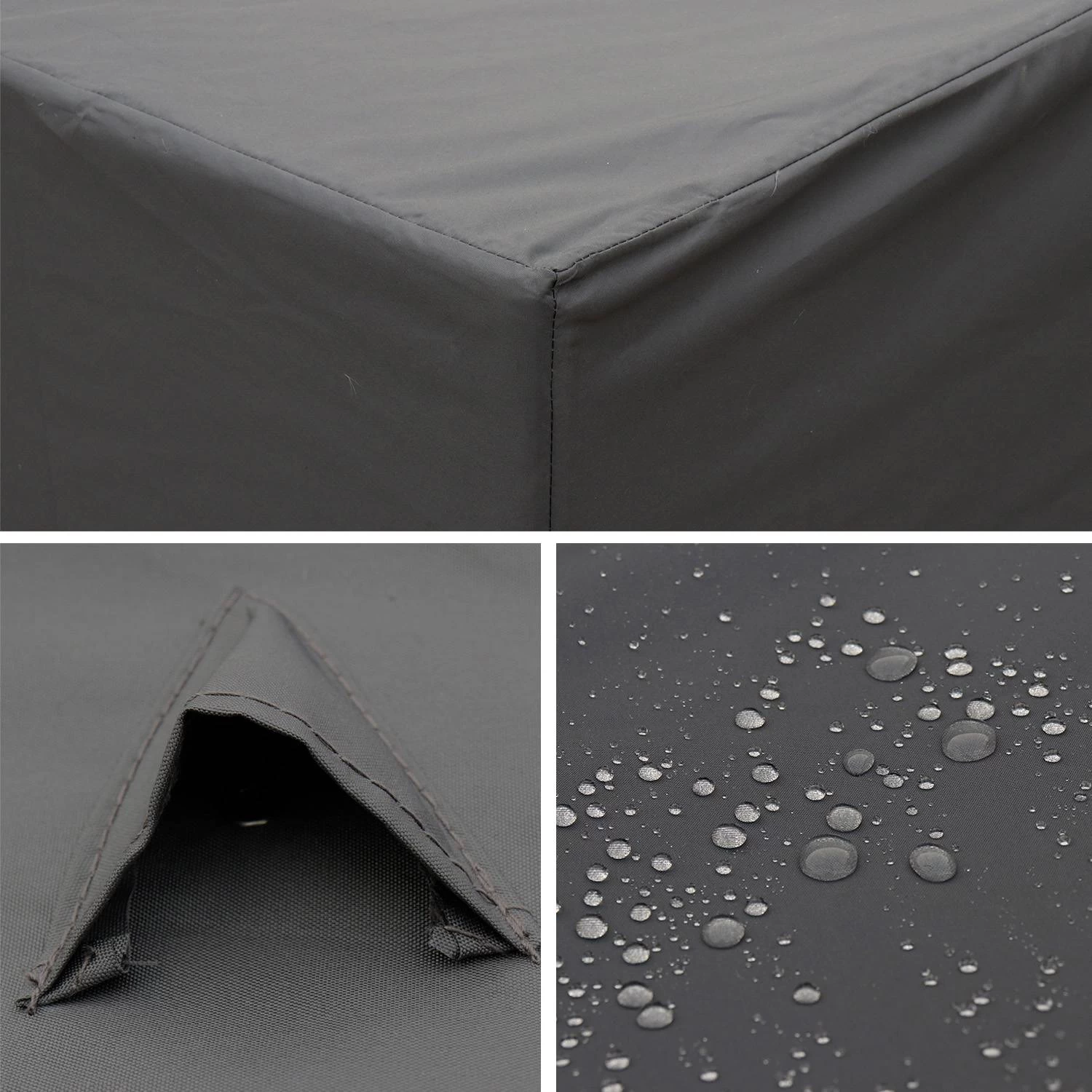 Protégez votre salon de jardin lorsque vous ne l’utilisez pas pour allonger sa durée de vie. Ces quatre housses sont en polyester avec un revêtement en polyamide. Déperlantes et imperméables grâce à l’enduction PA, elles préservent votre ensemble de jardin de la pluie, de la poussière et du soleil. Cela évite l’usure et les dégradations liées aux intempéries. Pratiques, ces housses traitées anti UV sont dotées d’un cordon de serrage avec œillets intégrés. Ce cordon est inséré dans l’ourlet et il ressort dans les angles, cela permet de maintenir les housses sur le salon de jardin. Deux aérateurs placés sur chaque housse empêchent la condensation. L’air libre circule également par le bas. Ainsi, les risques de moisissures sont évités.
