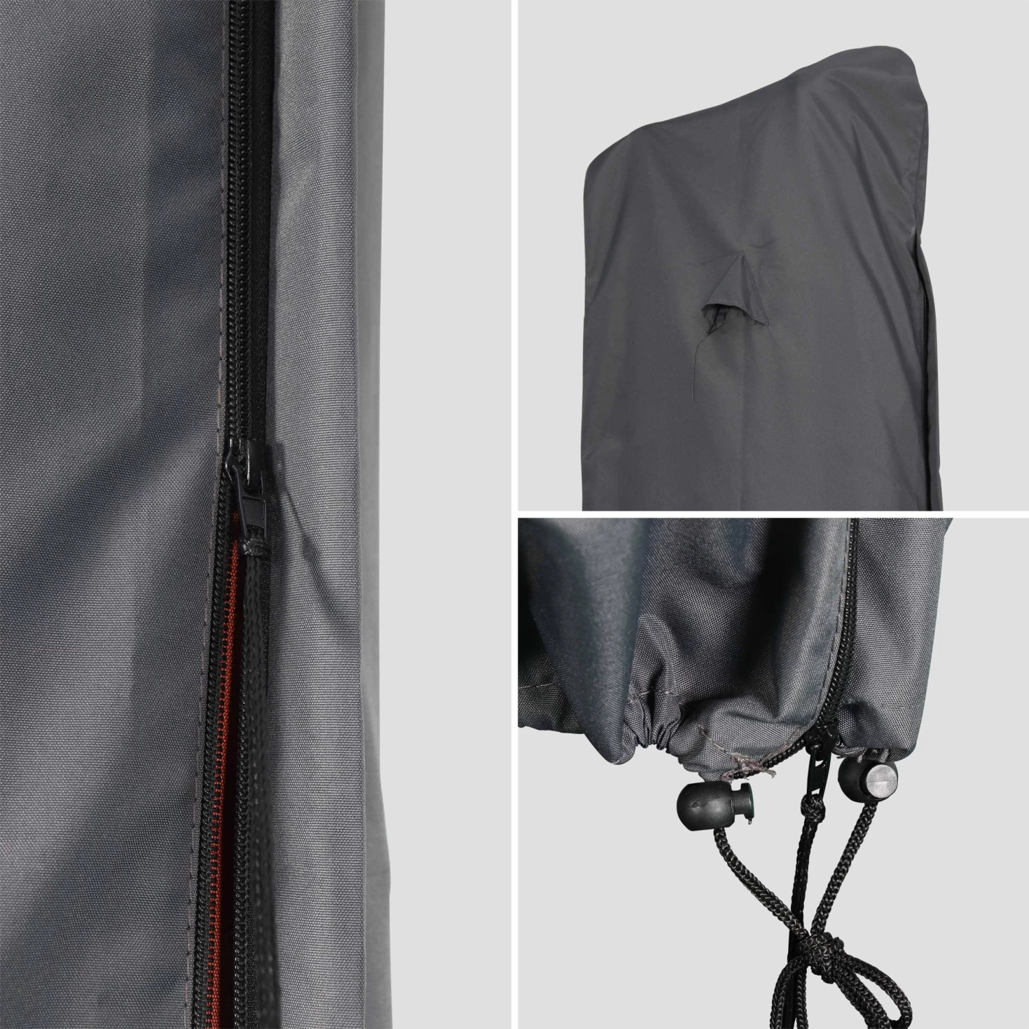 Cette housse en polyester, revĂŞtement polyamide protège efficacement la toile de votre parasol. Nous vous conseillons de ranger votre parasol dans la housse lorsque vous ne l’utilisez pas. Cela le prĂ©serve des intempĂ©ries et du soleil. En plus, cette housse est pratique. Elle est dotĂ©e d’une fermeture Ă©clair et d’une barre pour faciliter la mise en place de la housse. La housse est Ă©quipĂ©e d’un cordon de serrage avec oeillets intĂ©grĂ©s, insĂ©rĂ© dans l’ourlet et de 2 aĂ©rations qui empĂŞchent la condensation.Â