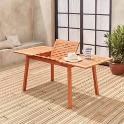 Table De Jardin Extensible Bois Et Aluminium 190/253 Cm, 8 Chaises Empilables