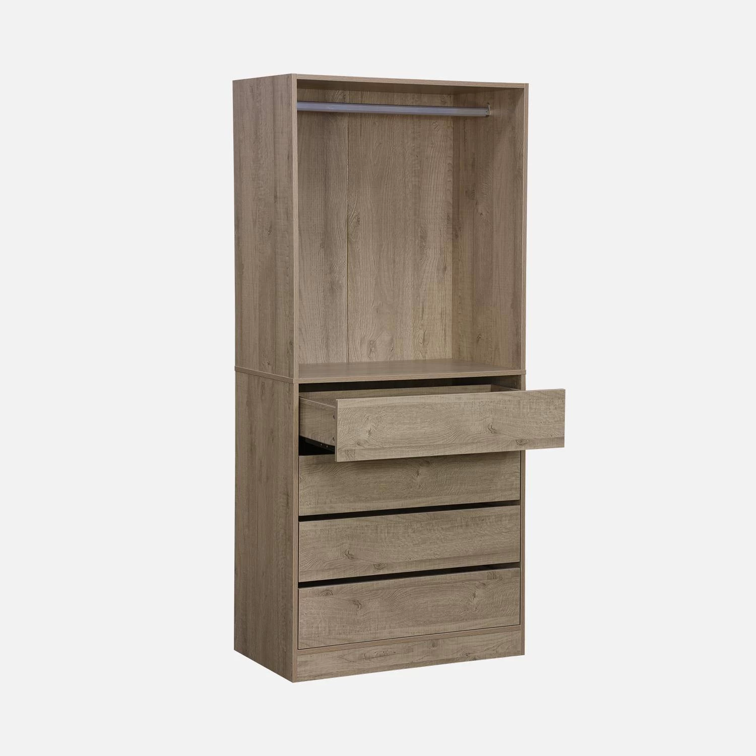 Avec ses 4 tiroirs et sa penderie, ce module dressing offre de belles possibilitĂ©s de rangement. La penderie vous permet de pendre les vĂŞtements que vous ne souhaitez pas plier et ses tiroirs vous permettront de ranger facilement vos vĂŞtements. Sa couleur sobre et son design moderne lui permet de trouver facilement sa place dans votre maison.Â