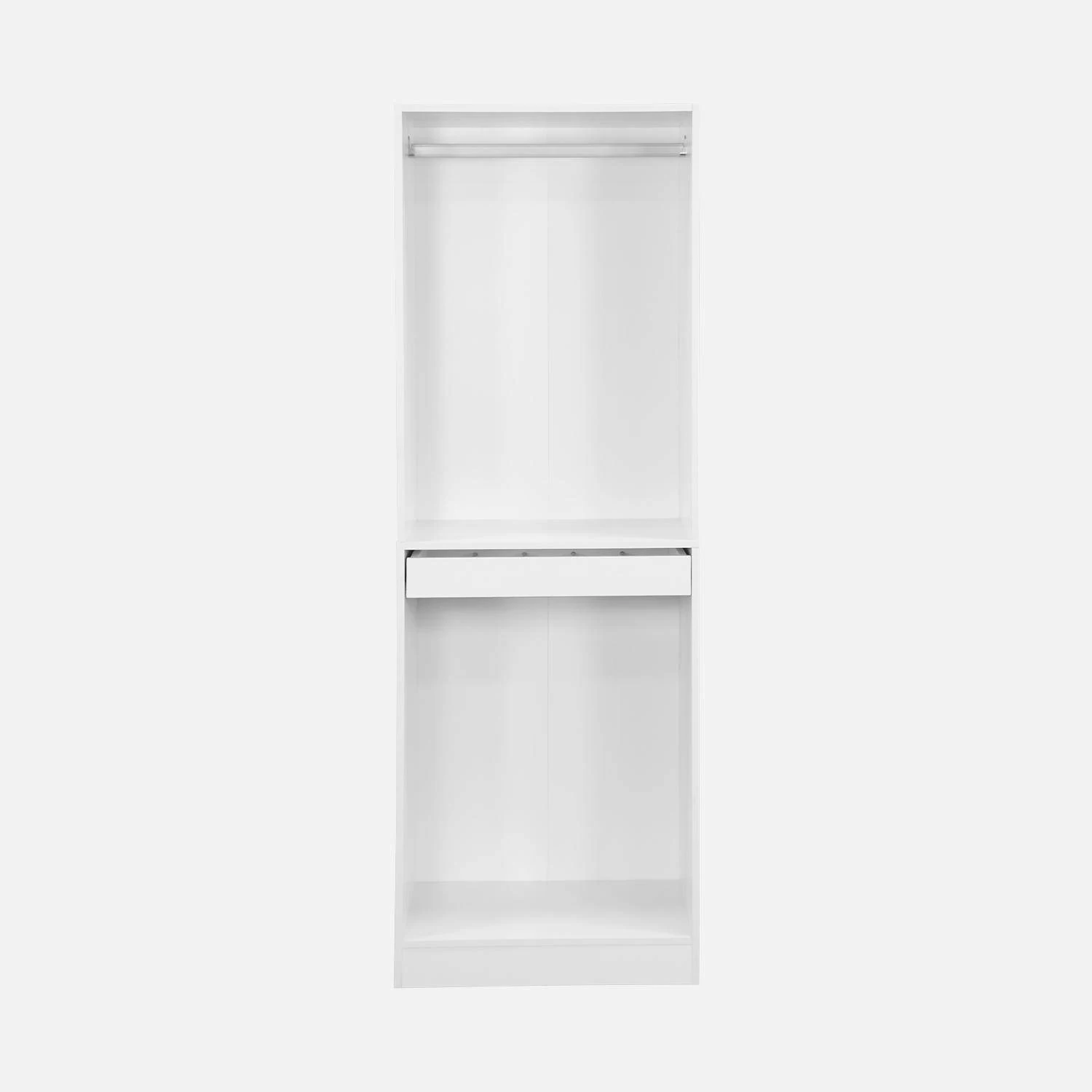 Avec sa penderie et son porte-pantalons, ce module dressing offre de belles possibilités de rangement. La penderie vous permet de pendre les vêtements que vous ne souhaitez pas plier et les 4 barres porte-pantalons vous permettent d’organiser vos pantalons sans les froisser.