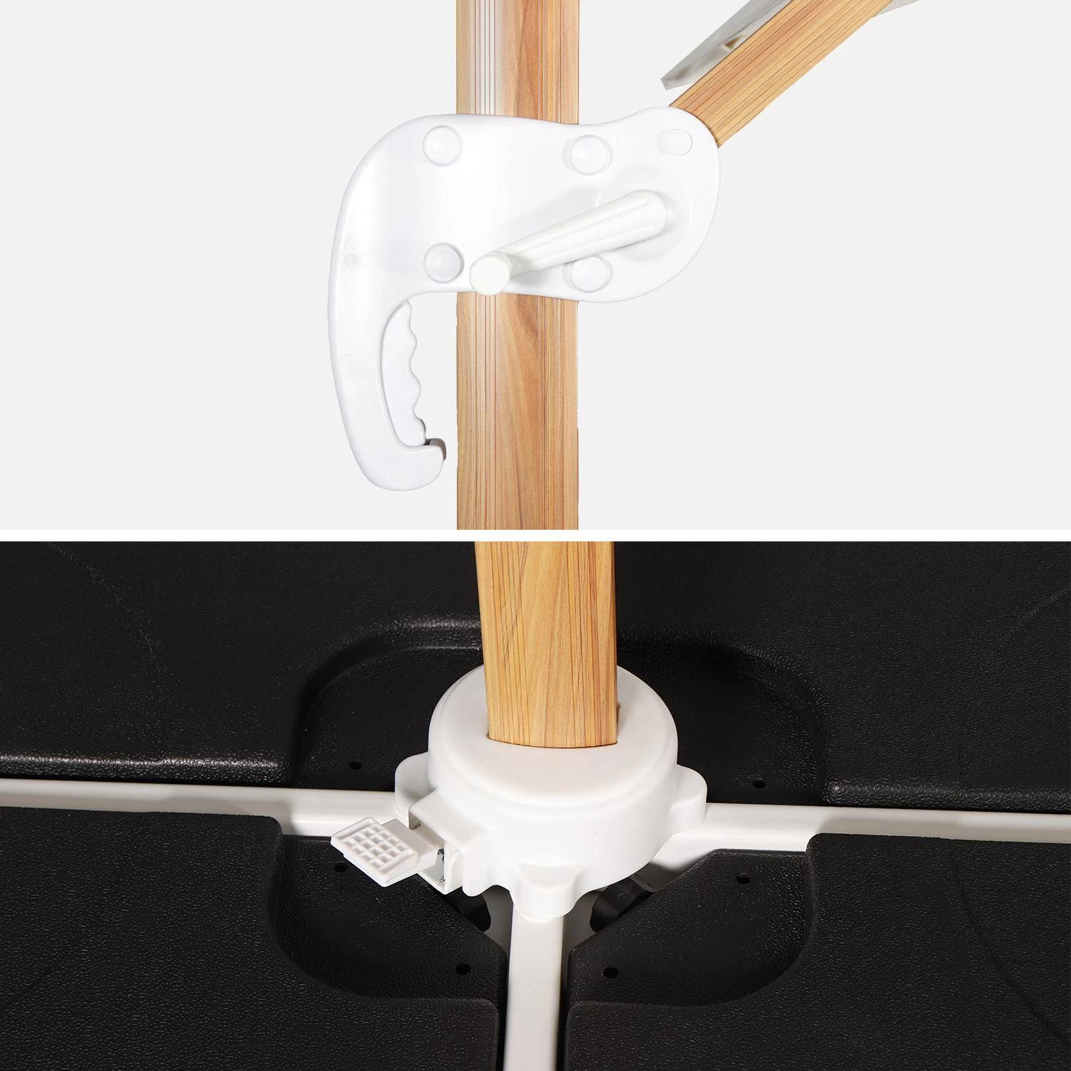 Avec une structure en aluminium effet bois, le parasol Wimereux est solide. Son côté design en fait un parasol dans l’air du temps, qui participera à la décoration de votre terrasse.