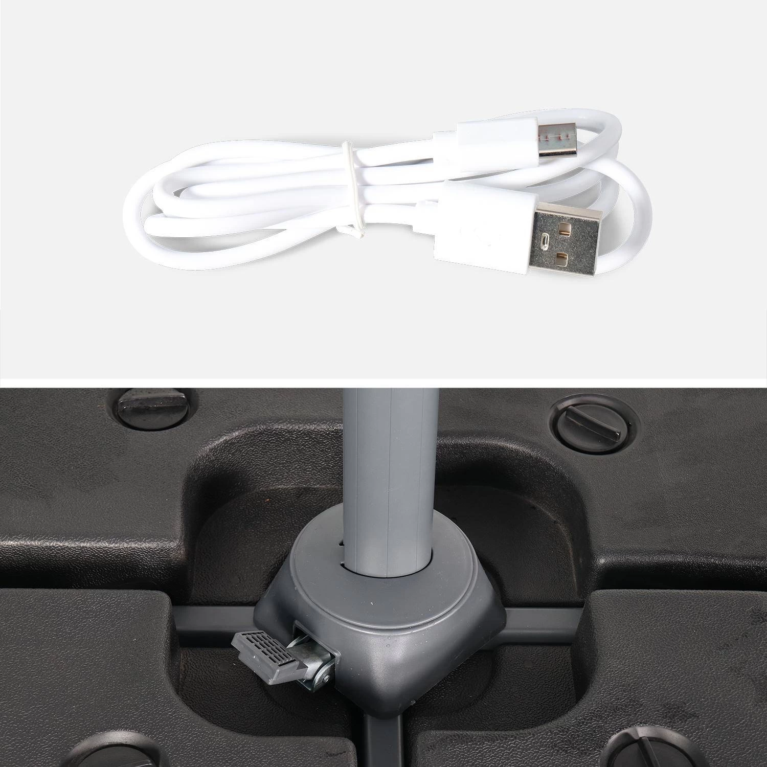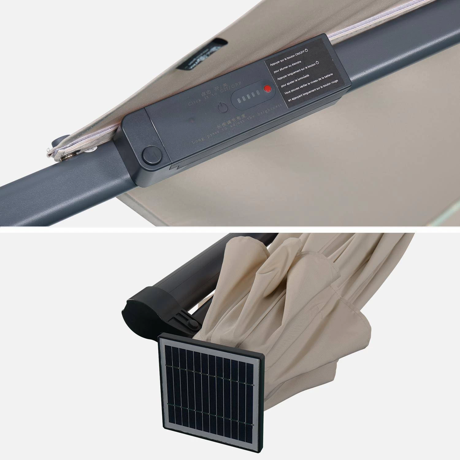 Avec un mât déporté et une toile ronde, le parasol Dinard est élégant et indémodable. Très pratique, il est idéal pour éclairer vos soirées grâce au système d’éclairage à LED dont il est doté. Ce système fonctionne par chargement solaire, et l’intensité de l’éclairage est réglable.