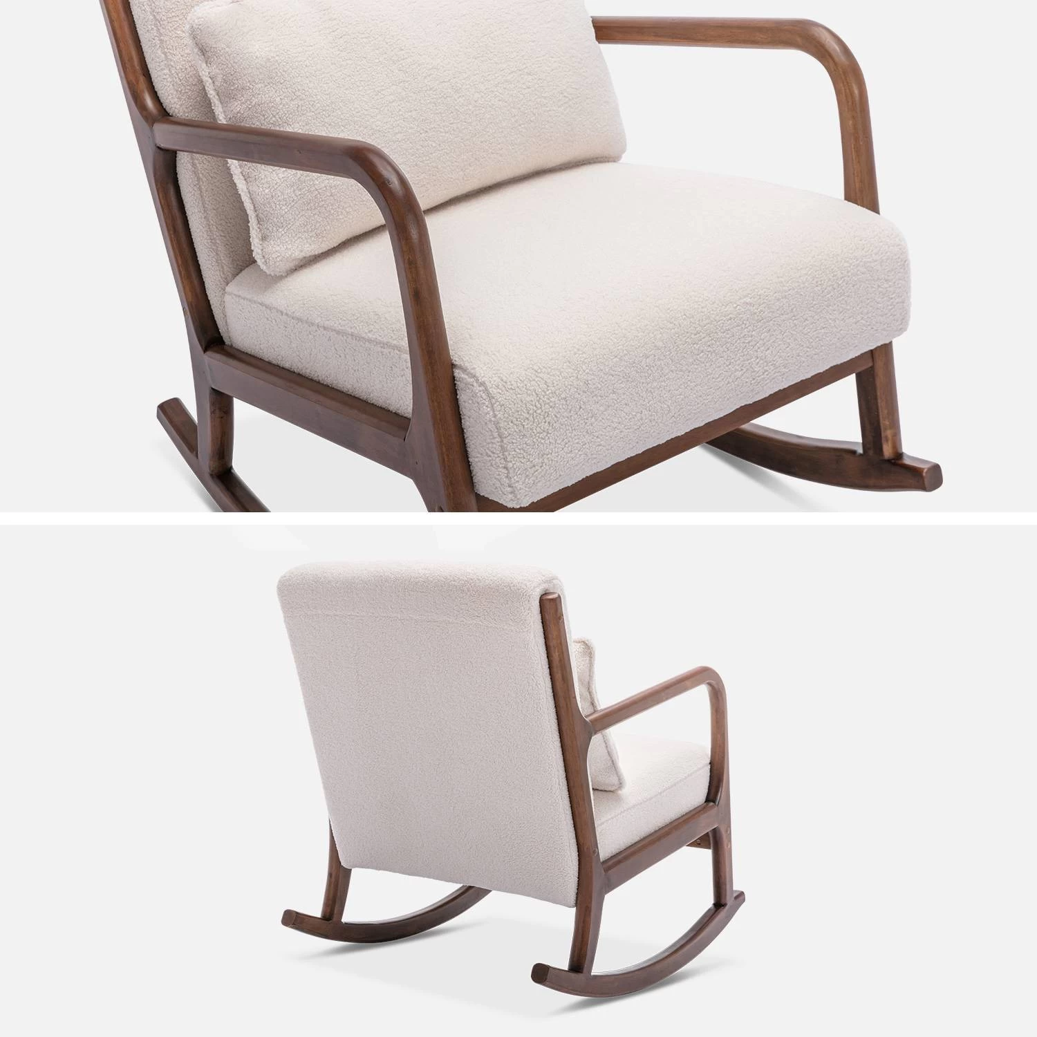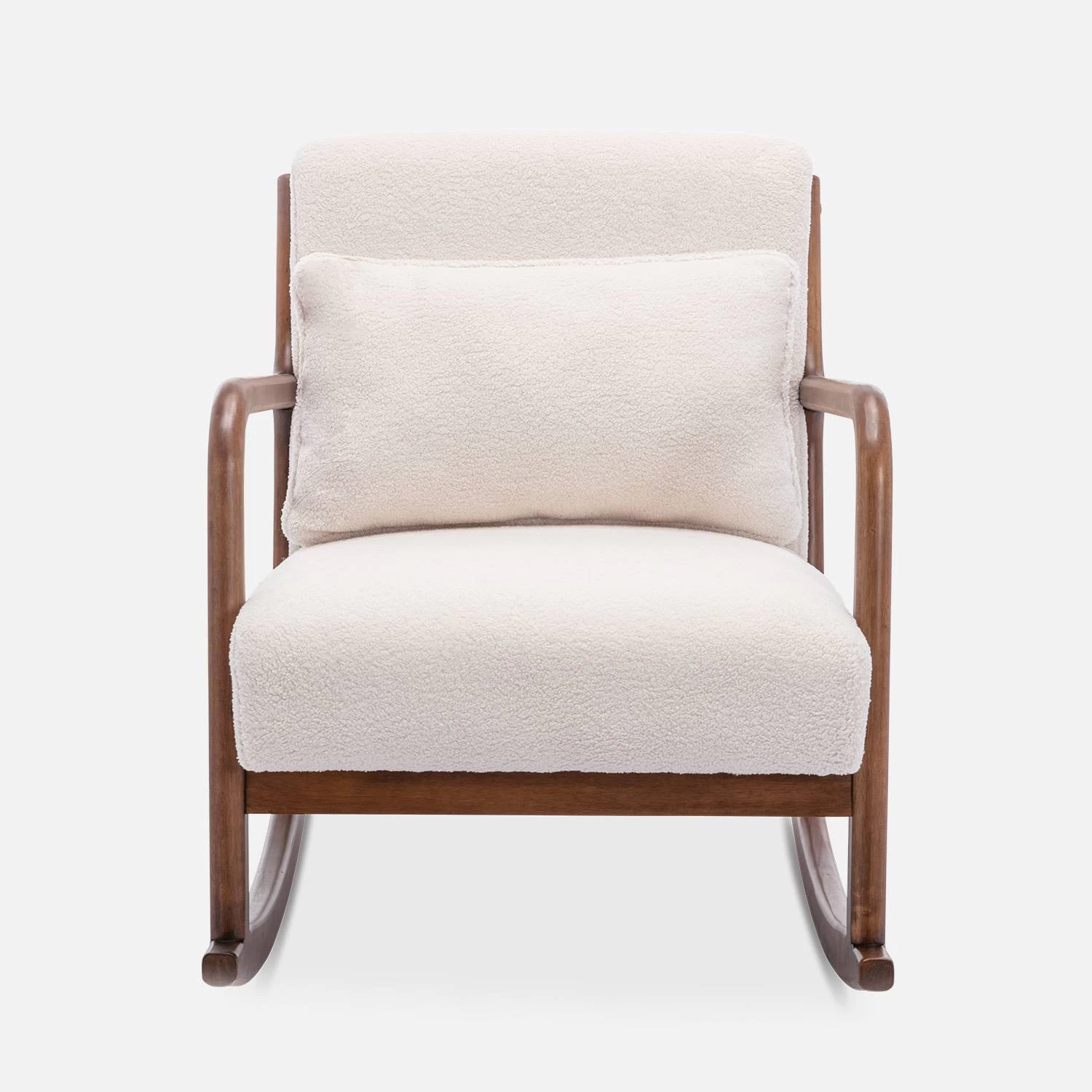 Des lignes arrondies pour ce fauteuil LORENS à la structure en bois solide et chaleureuse, qui par son coloris naturel apportera un côté épuré et zen à votre intérieur. Son dossier et son assise profonde et ferme contribueront grandement à votre confort. Avec ses pieds à bascule, profitez de son doux balancement pour un moment de détente parfait. Un coussin rectangulaire conçu dans la même matière vient compléter l’ensemble. Ce fauteuil trouvera facilement sa place dans votre salon ou dans la chambre de votre enfant.