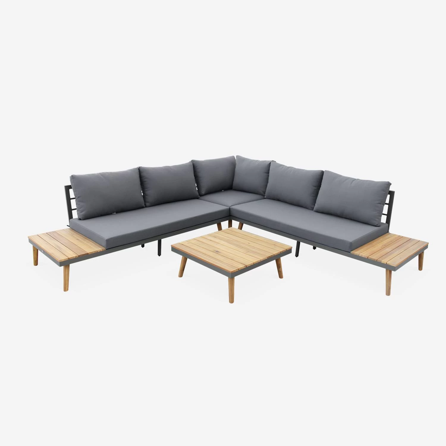 Avec un design minimaliste, le salon de jardin Buenos Aires est résolument moderne et élégant. Il accueille confortablement 5 personnes grâce à ses coussins d’assise et de dossier rembourrés. Bien pensé, ce salon de jardin en angle est doté de deux tablettes latérales qui sont très pratiques pour poser votre verre ou encore des livres. Il est également accompagné d’une table basse assortie.