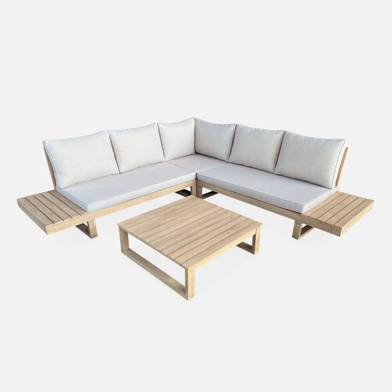 Havana est le salon de jardin parfait pour les grands espaces. Pensé pour accueillir jusqu’à 5 personnes, il trouvera facilement sa place dans votre jardin pour y recevoir toute la famille. Authentique, ce salon de jardin en bois brossé avec un effet blanchi possède un charme rustique indéniable ! Il ne manquera pas de plaire d’année en année grâce à son look intemporel. En plus d’avoir un design charmant, Havana est équipé de coussins épais en polyester pour un confort extrême. Bien pensé, le canapé d’angle dispose de deux tablettes latérales pour y déposer : cocktails, lunettes de soleil et crème solaire. Une table basse assortie au salon de jardin accompagne également l’ensemble pour y mettre verres, bouquins, ect. Prenez un moment pour vous avec Havana.