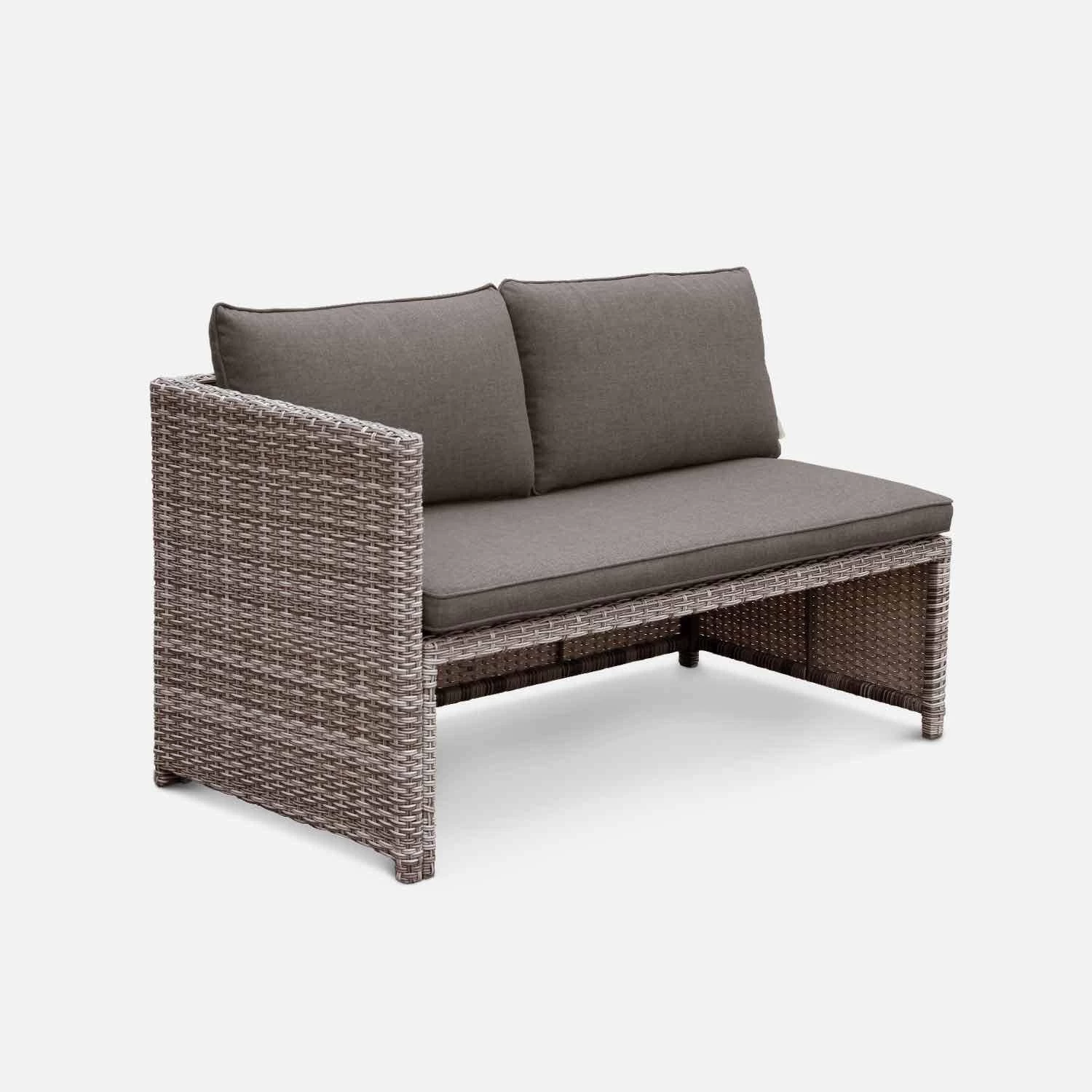 À mi-chemin entre le salon et la table de jardin, le Reggiano est à la fois pratique et tendance. En effet, il est adapté aux repas à table et à la détente. Composé d’un canapé, d’une méridienne, de deux poufs et d’une table, le Reggiano accueille 6 personnes. Les assises sont épaisses et les dossiers sont rembourrés pour vous assurer un confort appréciable. Astucieux, les poufs se glissent sous le canapé pour un rangement optimal.
