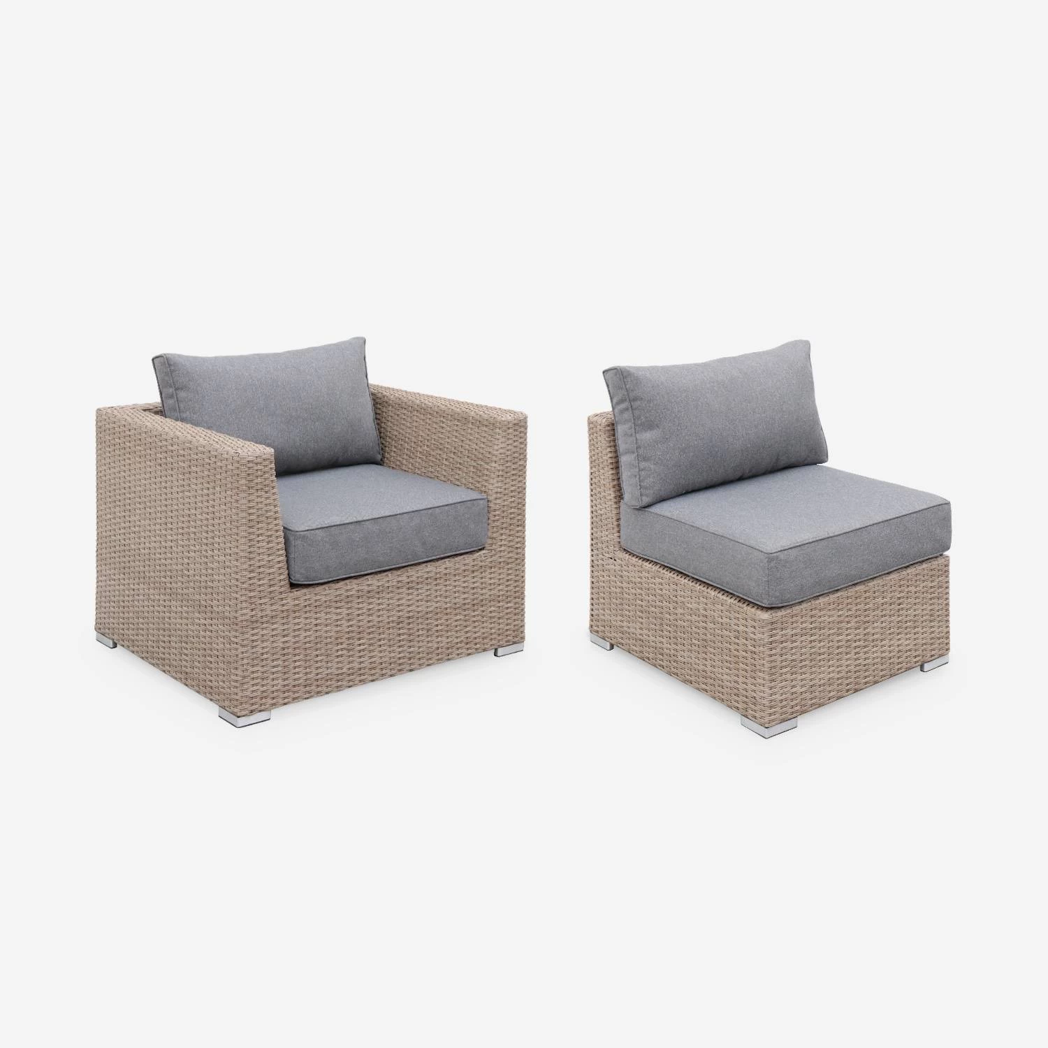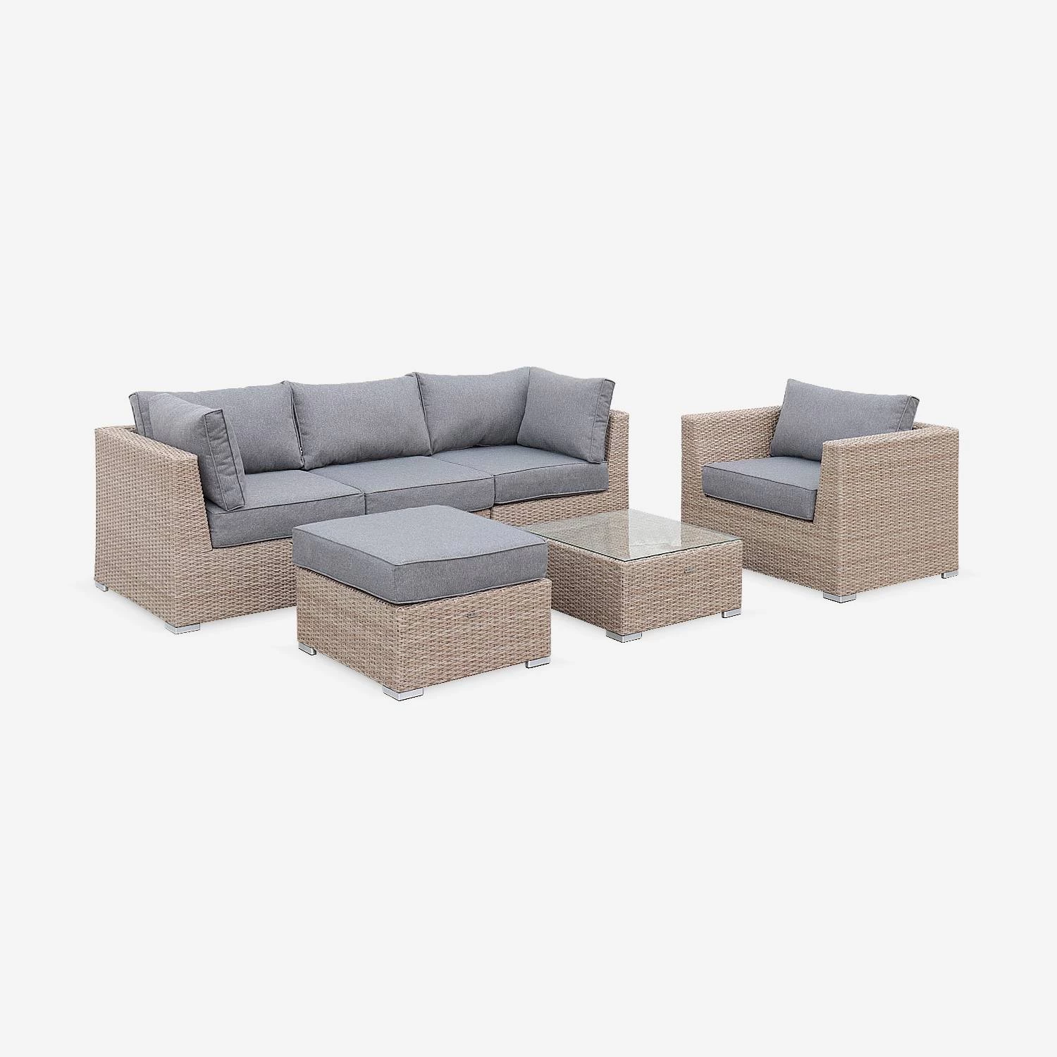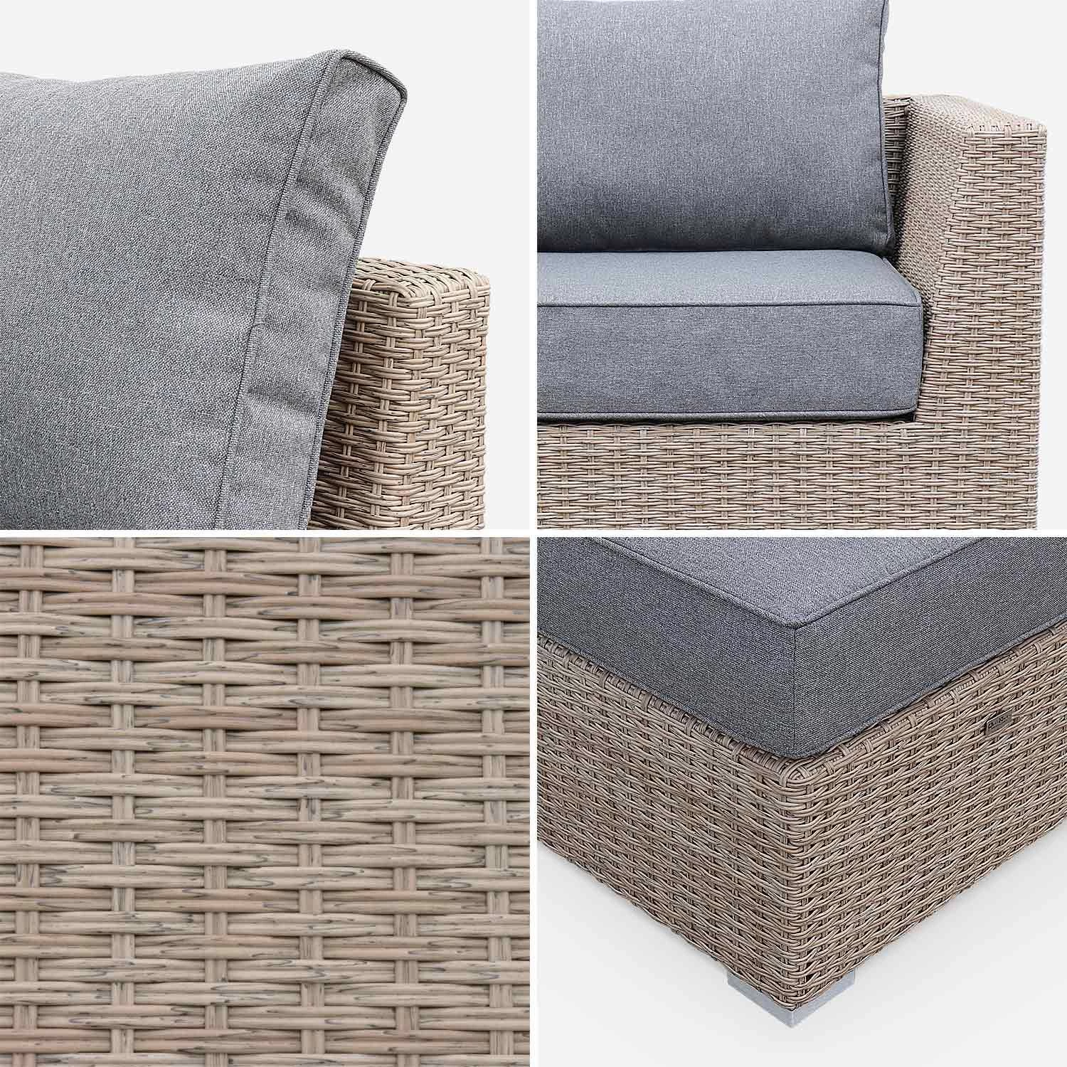 Salon De Jardin Résine Tressée Arrondie 5 Places Couleur : Naturel / Gris Foncé