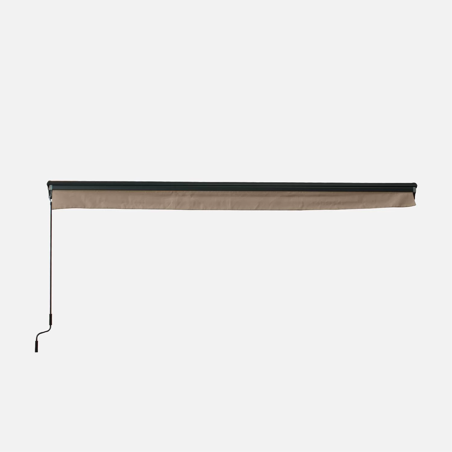 La toile est enroulée autour d’un tube en aluminium anodisé, robuste. La tension de cette toile se fait à l’aide d’un bras en aluminium, double câblage de tension, pour une toile tendue en permanence et une ouverture facilitée. Le déploiement et le rangement de la toile s’effectuent simplement. Pour régler la projection souhaitée ou replier le store, il suffit d’insérer la manivelle fournie dans l’œillet prévu et de l’actionner.