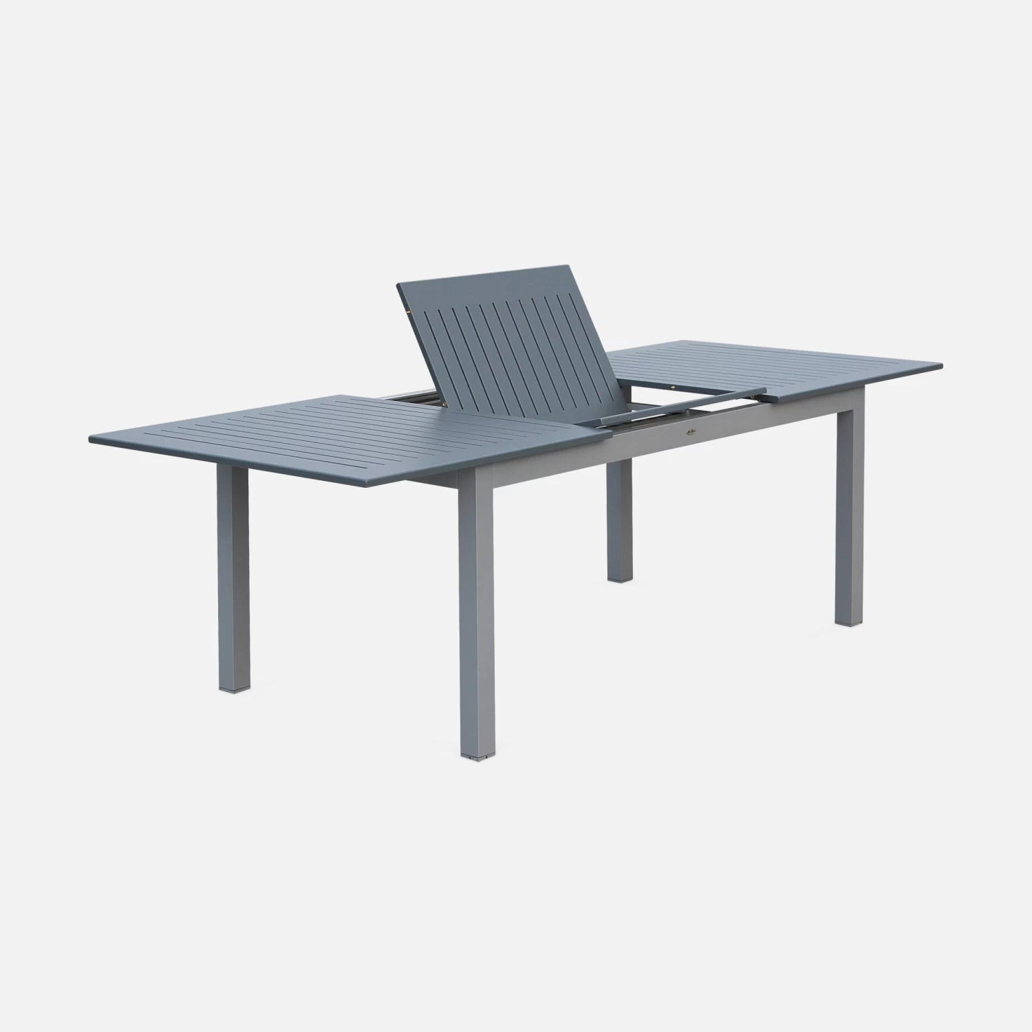 Avec un design simple et élégant, la table Chicago est un produit intemporel qui trouve sa place aussi bien en intérieur qu’en extérieur. Le plateau de la table est composé de lames d’aluminium. Pratique, la table Chicago est extensible, elle passe de 1,75m à 2,45m pour accueillir encore plus de personnes. Il suffit de tirer les extrémités de la table et de déplier la rallonge papillon intégrée.