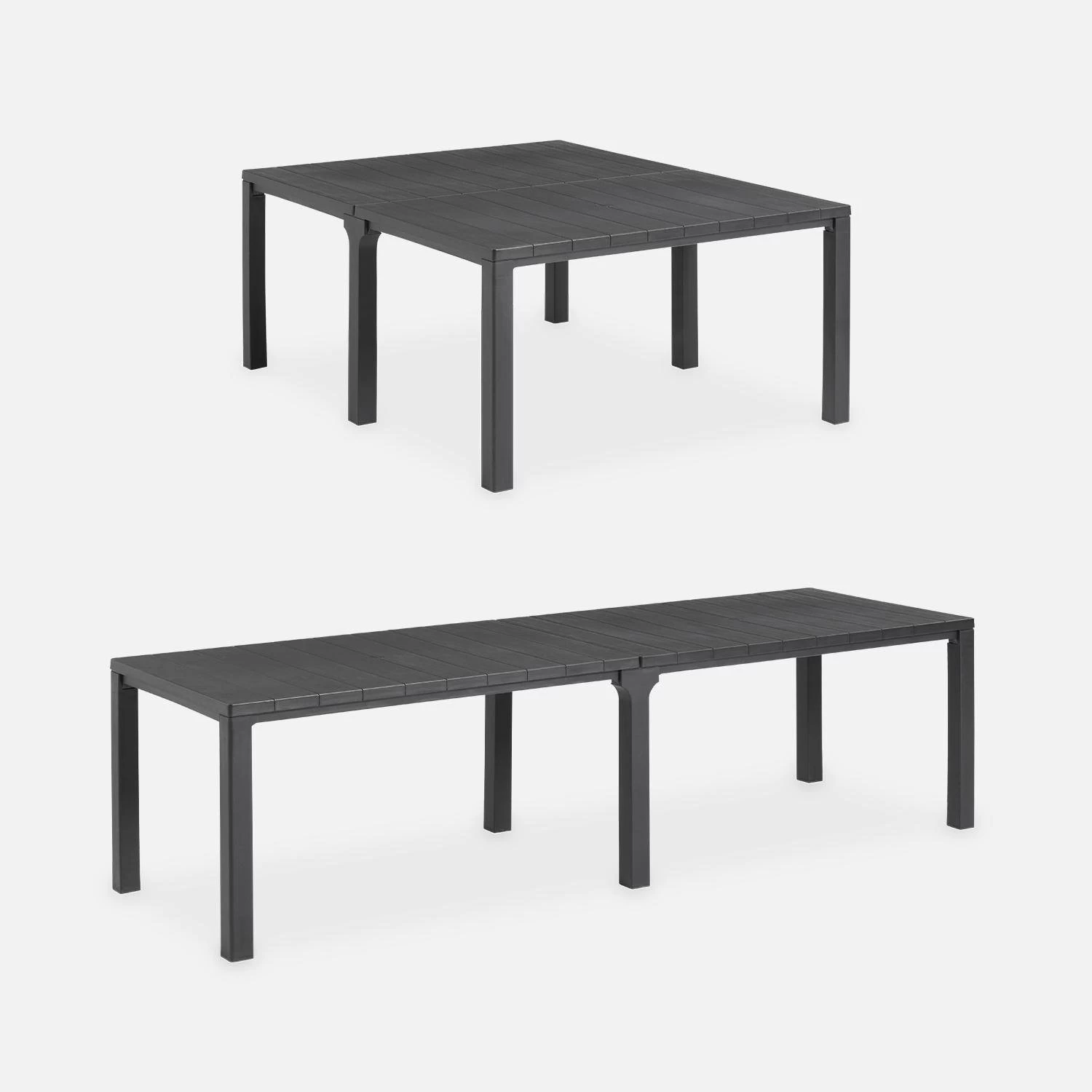 Vous aimez recevoir de grandes tablées chez vous et partager des repas jusqu’au bout de la nuit avec vos amis ? La table Julie vous permet de recevoir confortablement 4 à 10 personnes pour vos repas en extérieur. Elle est très pratique car elle offre 3 configurations différentes. Vous prévoyez un repas en petit comité ? Installez la table seule. Des invités de dernières minutes arrivent ? Ajoutez un plateau pour créer une grande table et augmenter le nombre de place. Vous pouvez, au choix, placer les plateaux côte à côte ou bout à bout. Il suffit d’ajouter un pied ou de changer l’emplacement des pieds centraux.
