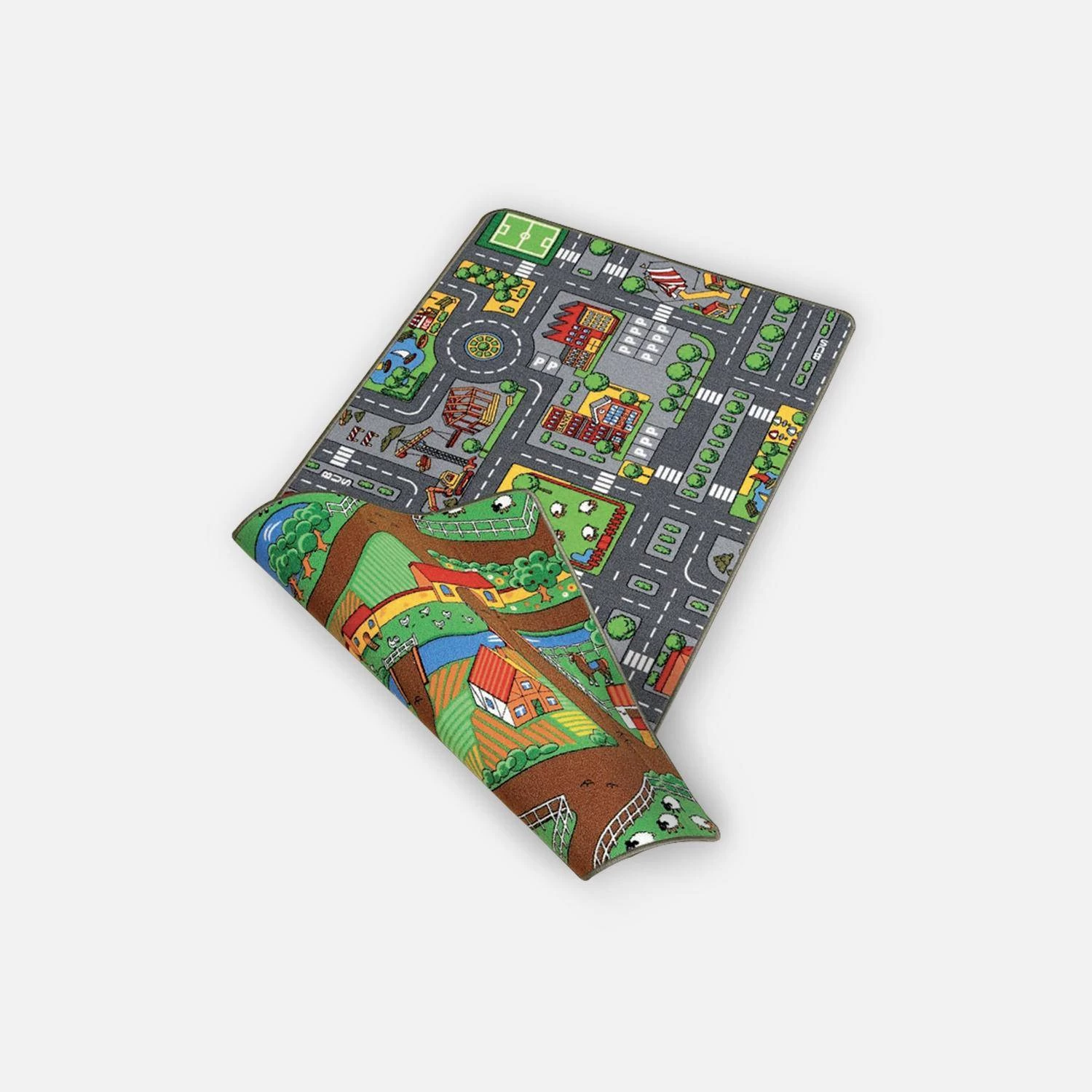 Votre enfant va adorer jouer sur ce tapis de jeu rĂ©versible et ludique. Avec ce tapis 2 en 1, il va pouvoir laisser libre cours Ă son imagination. D’un cĂ´tĂ©, il dĂ©couvra le plan d’une ville sur lequel il pourra s’amuser avec des petites voitures (non fournies). De l’autre, le plan d’une ferme sur lequel il pourra inventer de nouvelles histoires.Â