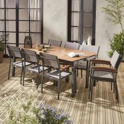 Table De Jardin Extensible Bois Et Aluminium, 8 Chaises Couleur : Anthracite / Gris Taupe