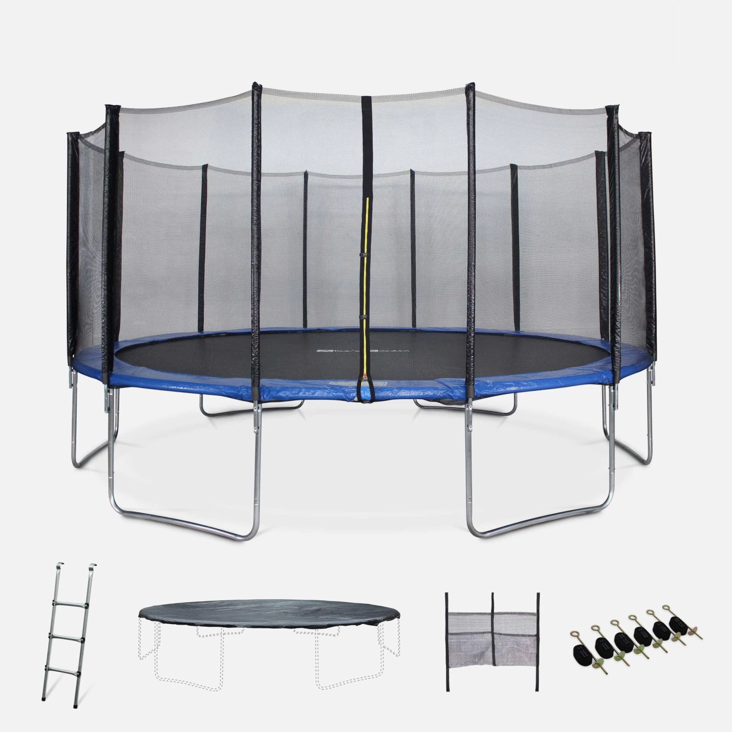 Le filet de sécurité, haut de 1,80m à partir du tapis de saut, sécurise l’utilisation et empêche les chutes hors du trampoline. Bien pensé, ce filet au maillage 6×6 millimètres est refermable avec des clips et une fermeture éclair. Cette dernière est jaune, pour vite repérer la sortie en cas d’urgence.